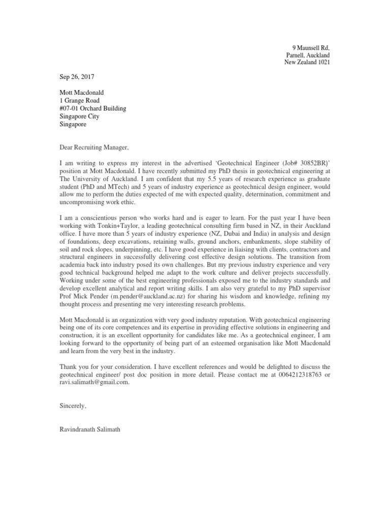 Sample Cover Letter For Job Application Singapore